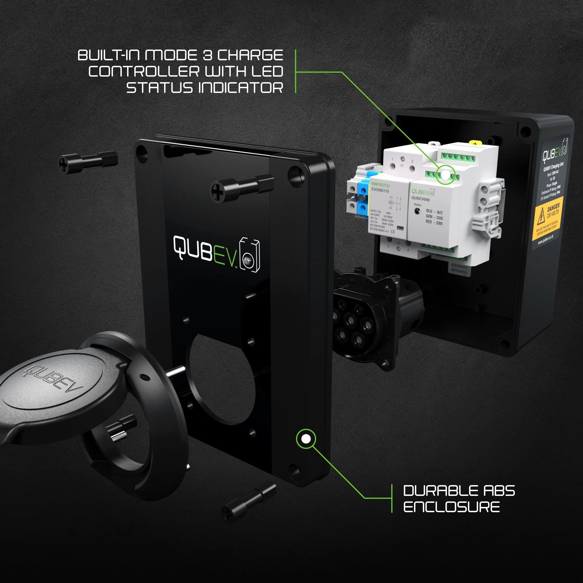 وحدة شحن السيارات الكهربائية QUBEV | مقبس Type 2 | 32 أمبير / 7.2 كيلوواط | IP65